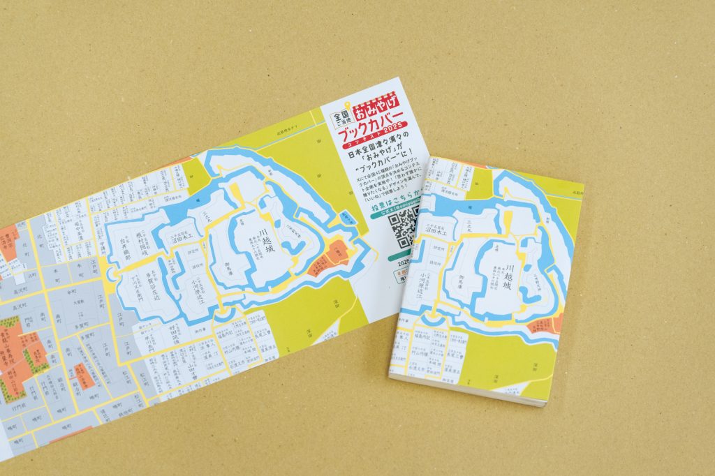トーハン主催の「全国ご当地おみやげブックカバー コンテスト」に参加しました。当社で販売している「川越城下かさね地図」をデザインしたブックカバー、近隣書店で配布していただきました(2025年終了)