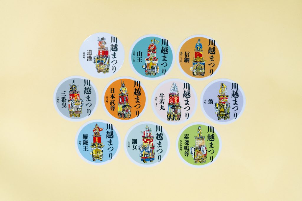 大人気の川越まつり「山車ふせん」のイラストがステッカーになりました。いつもで推しの山車を身近に!29種揃っています。